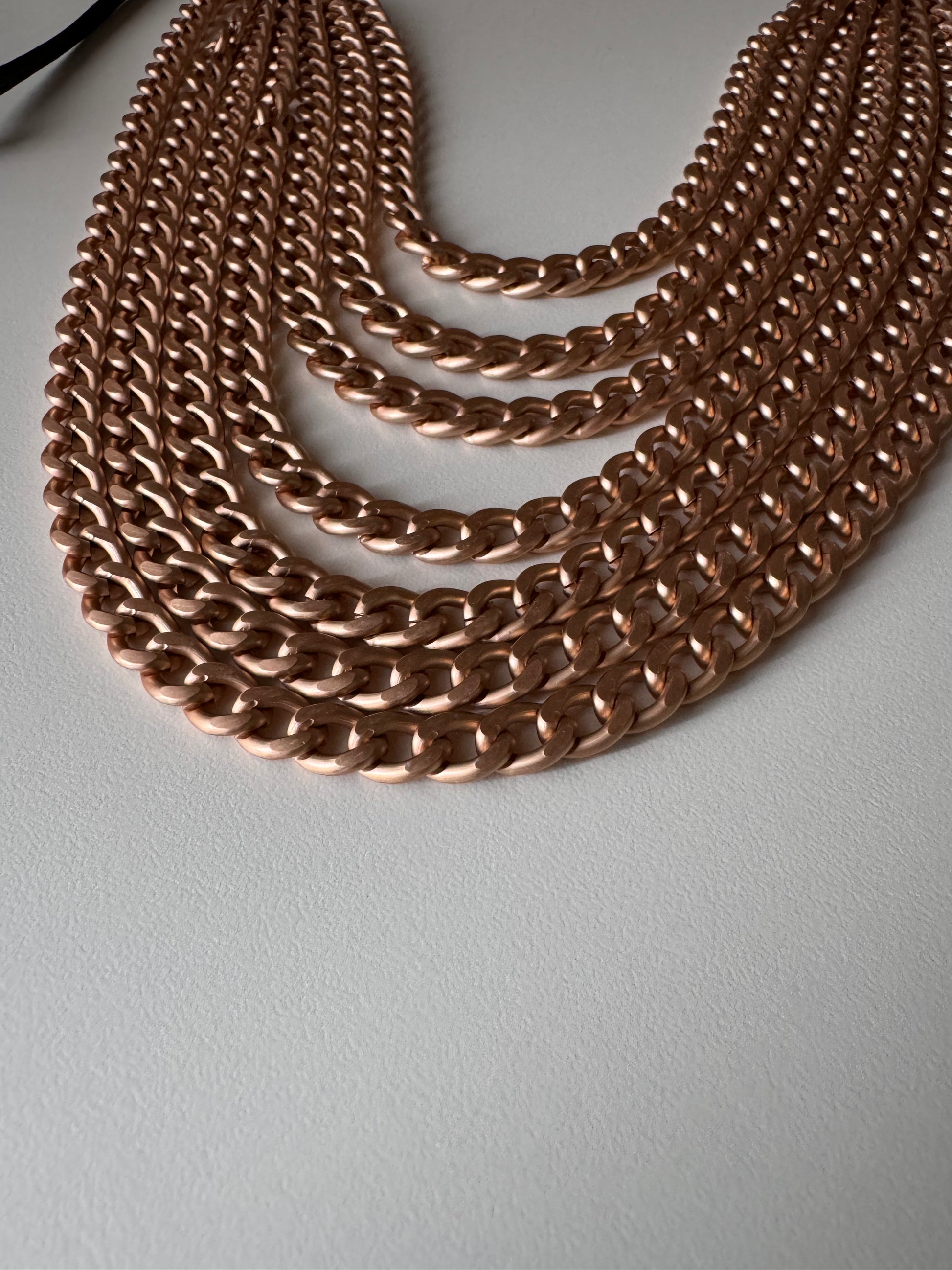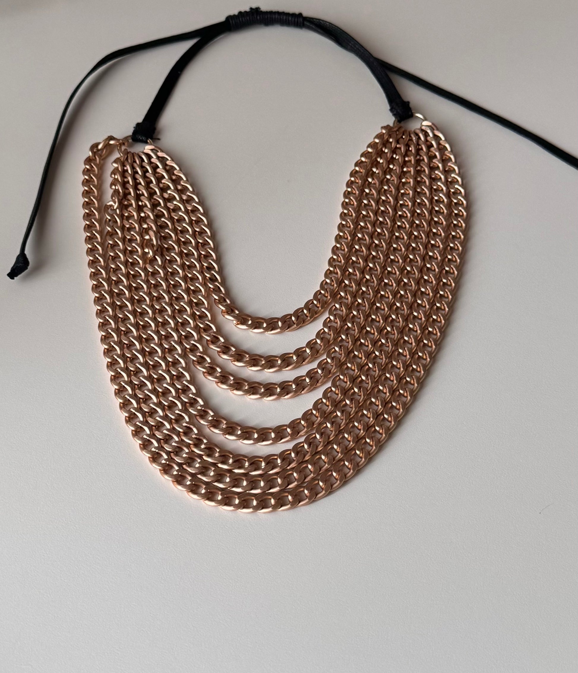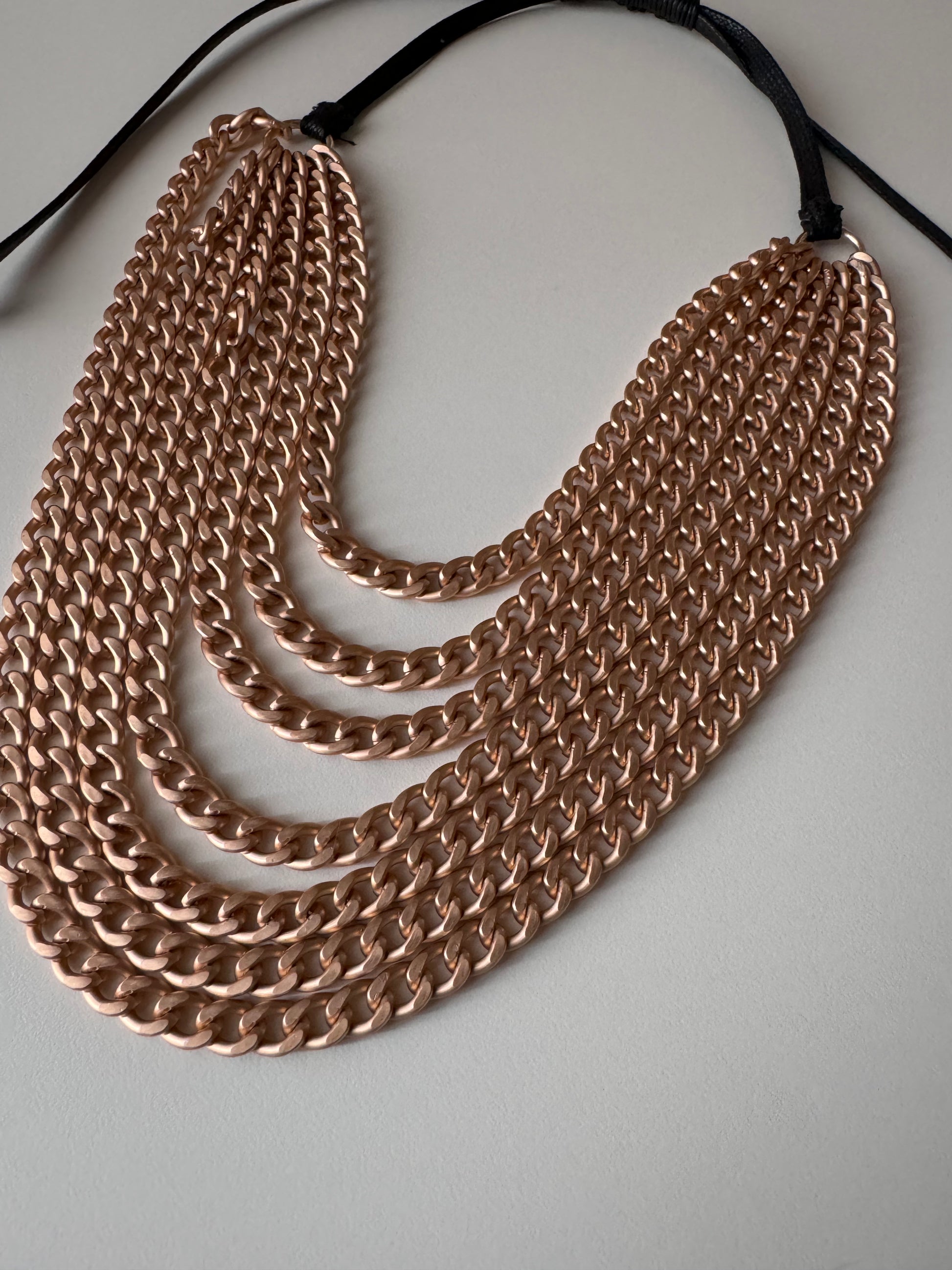 La chiusura in un nastro di cotone regolabile a contrasto nero aggiunge un tocco di modernità e funzionalità permettendo di adattare la collana ad ogni look e occasione