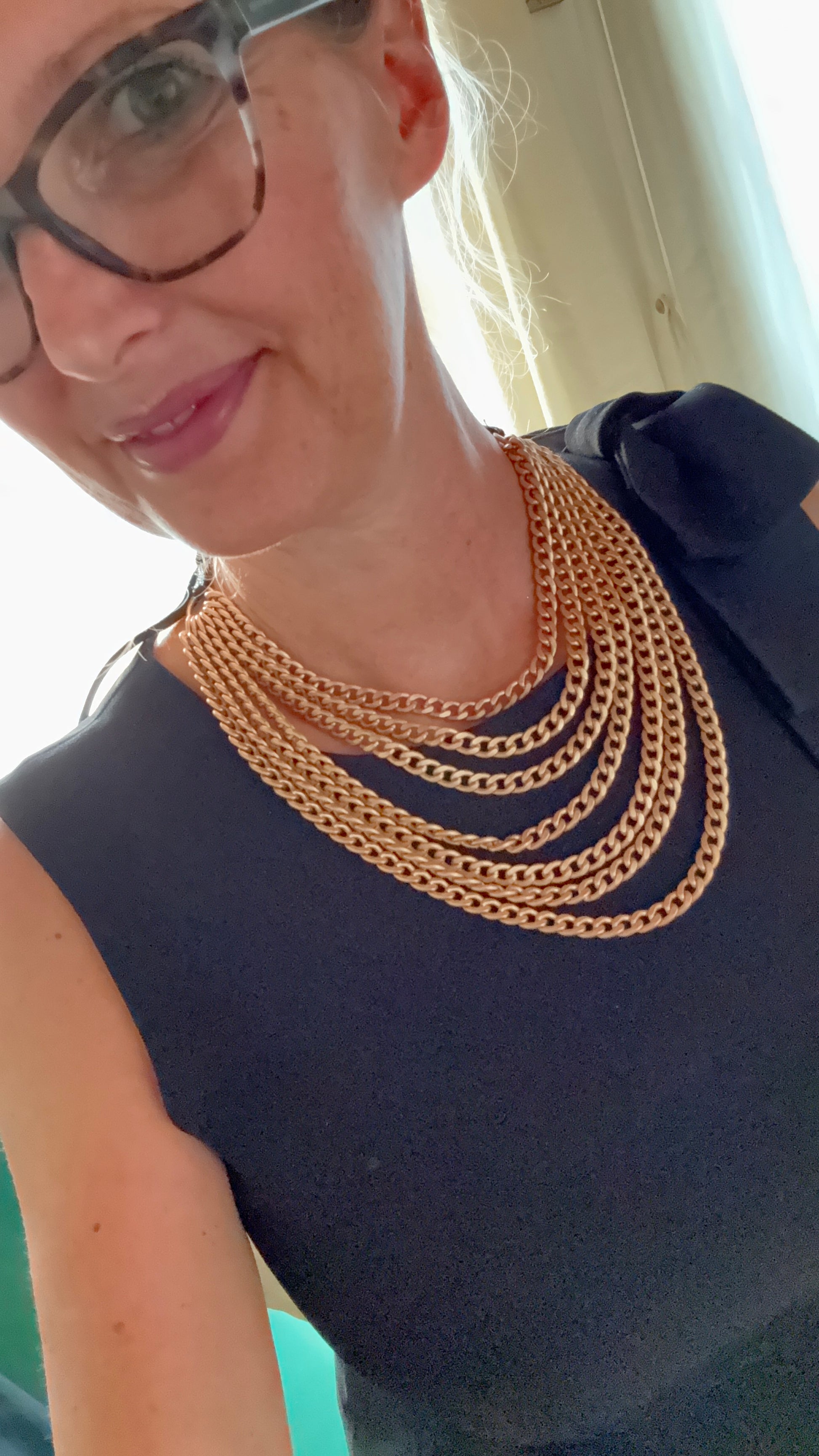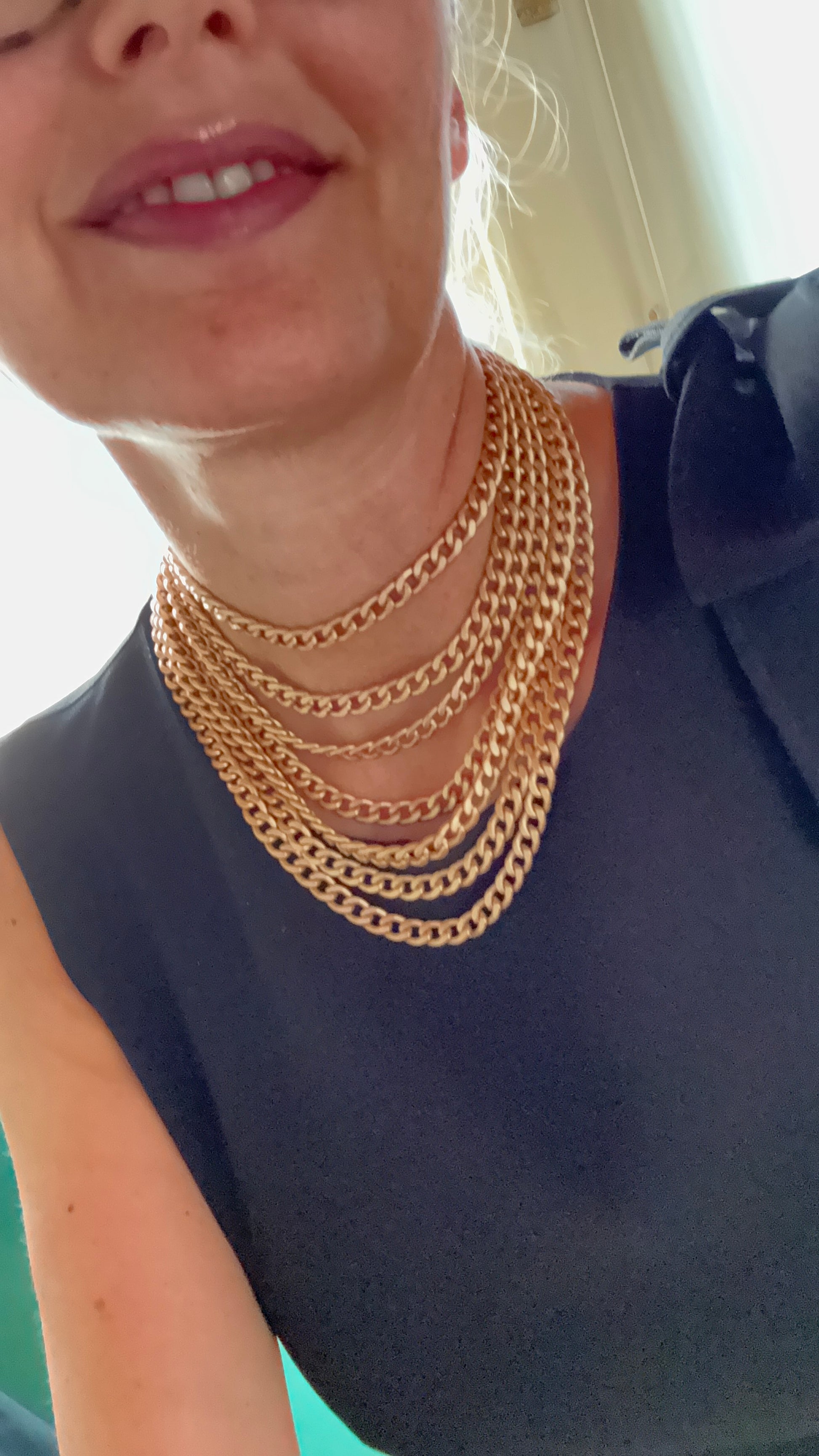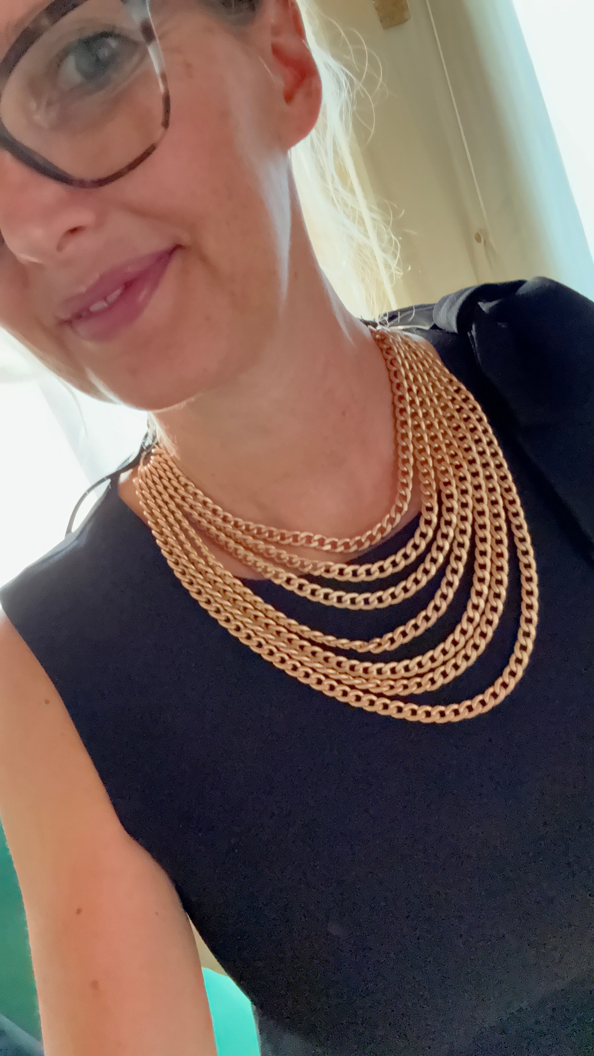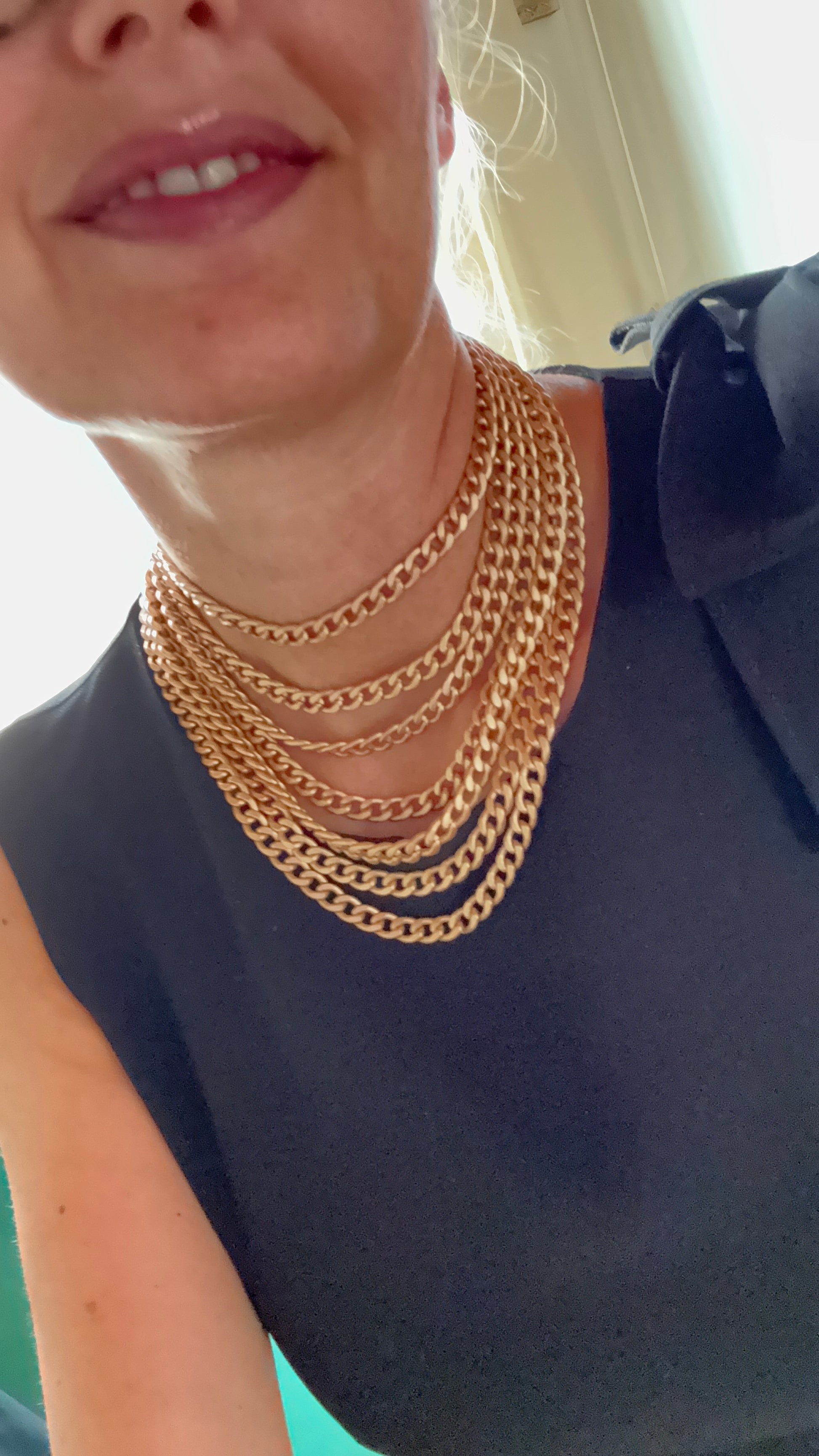 La chiusura in un nastro di cotone regolabile a contrasto nero aggiunge un tocco di modernità e funzionalità permettendo di adattare la collana ad ogni look e occasione