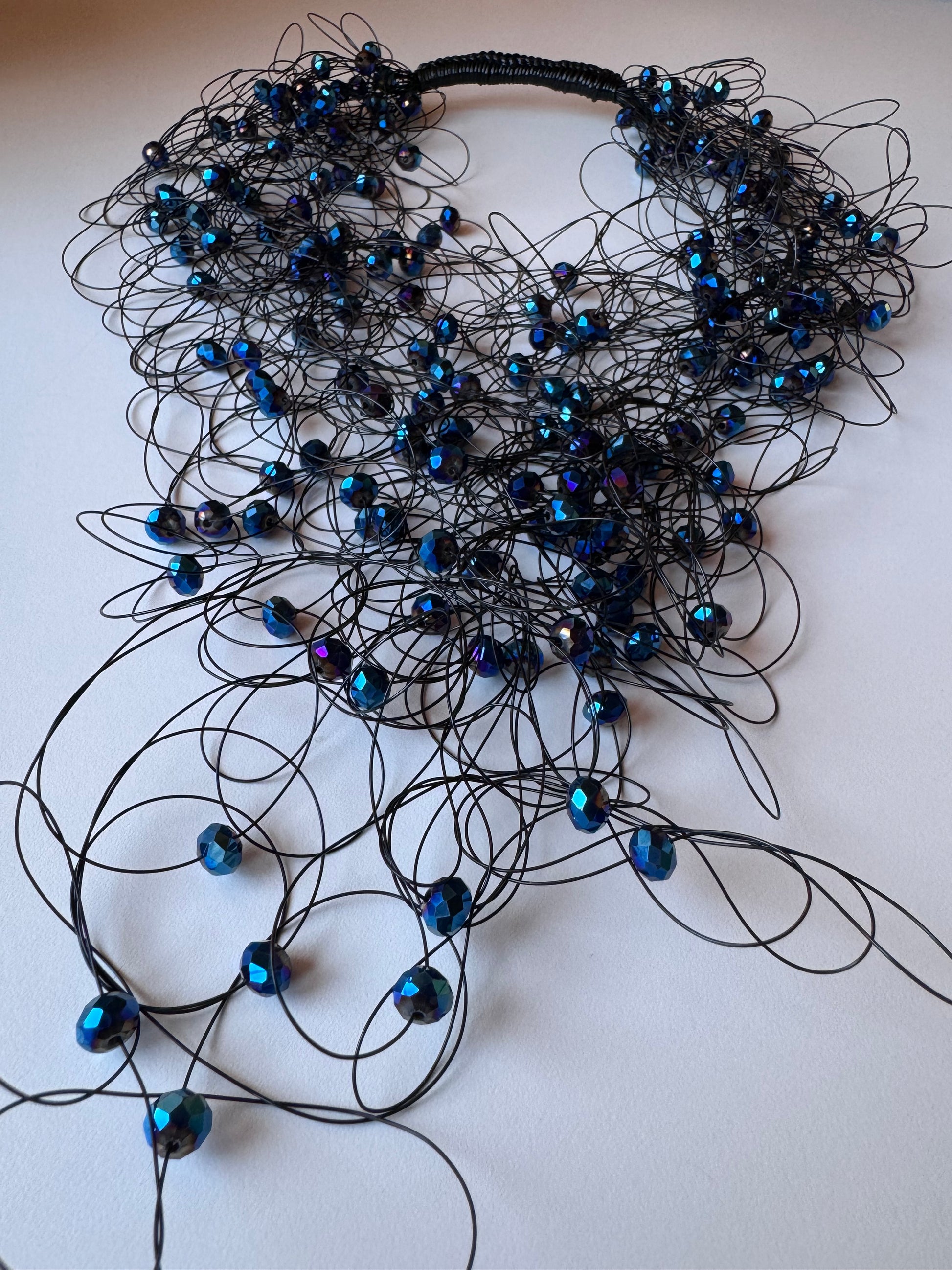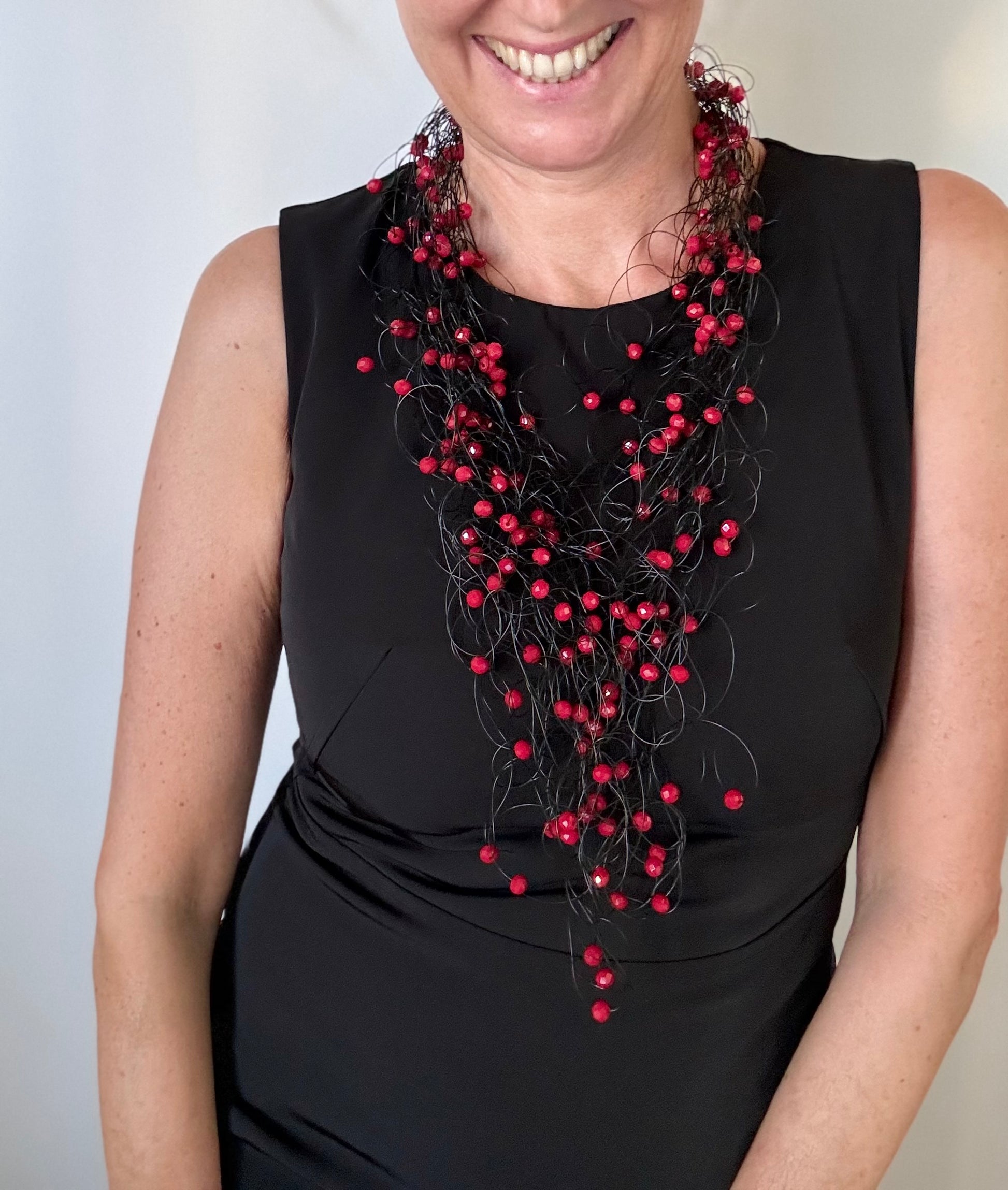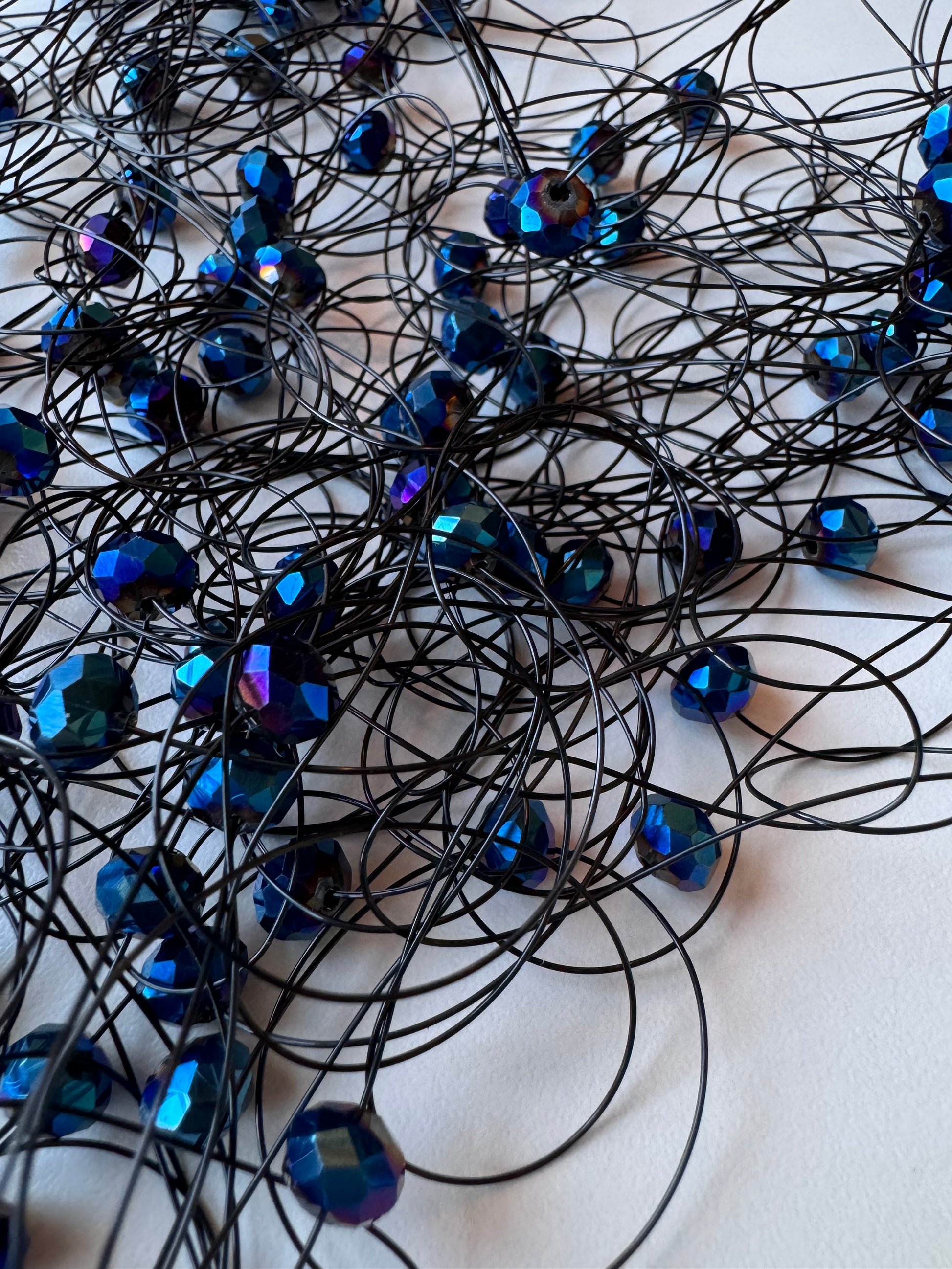 Immaginatevi una collana lunga e leggerissima, composta da fili di nylon e cristalli come gocce di rugiada catturano la luce e la riflettono in una danza incantevole.