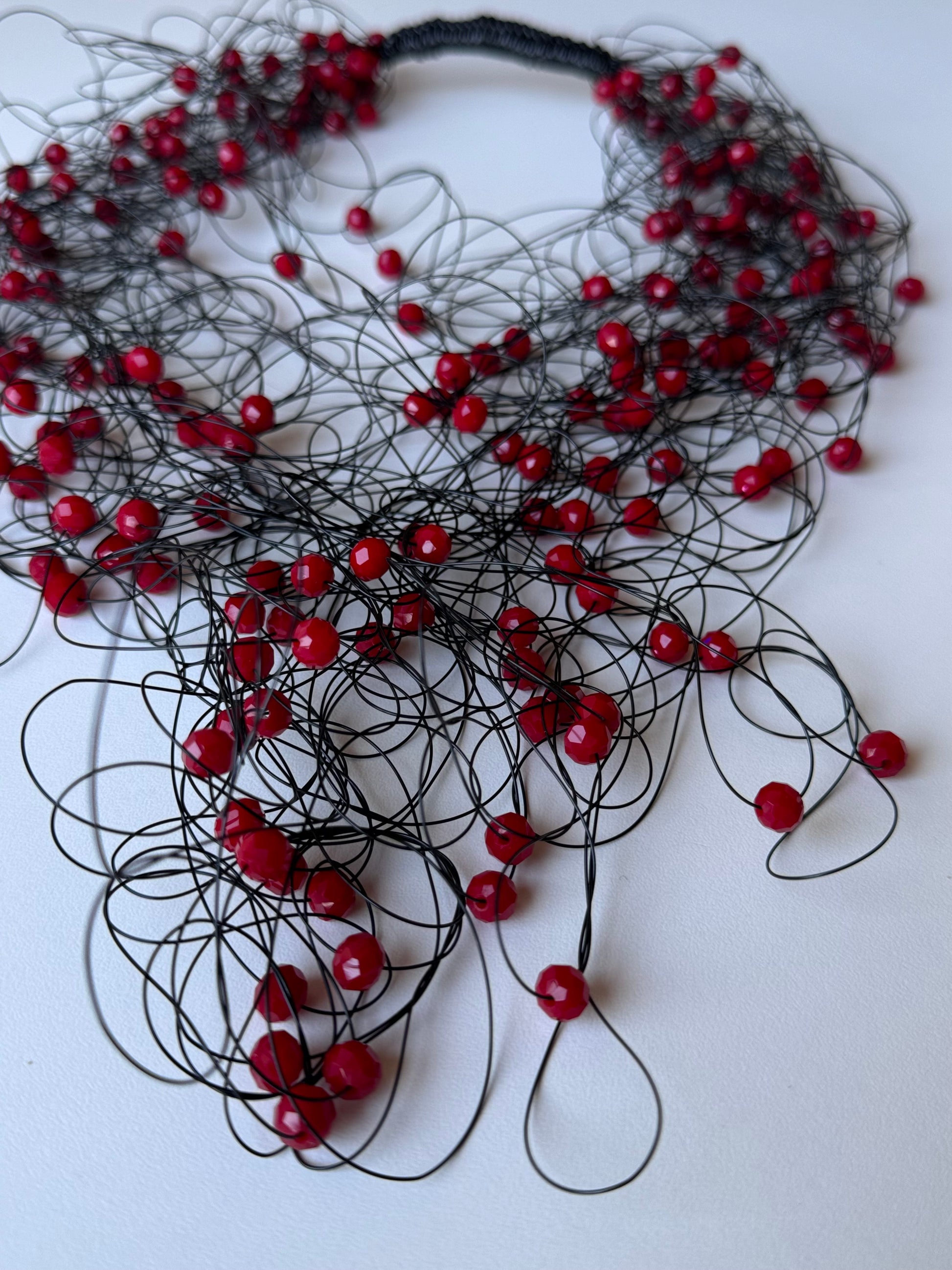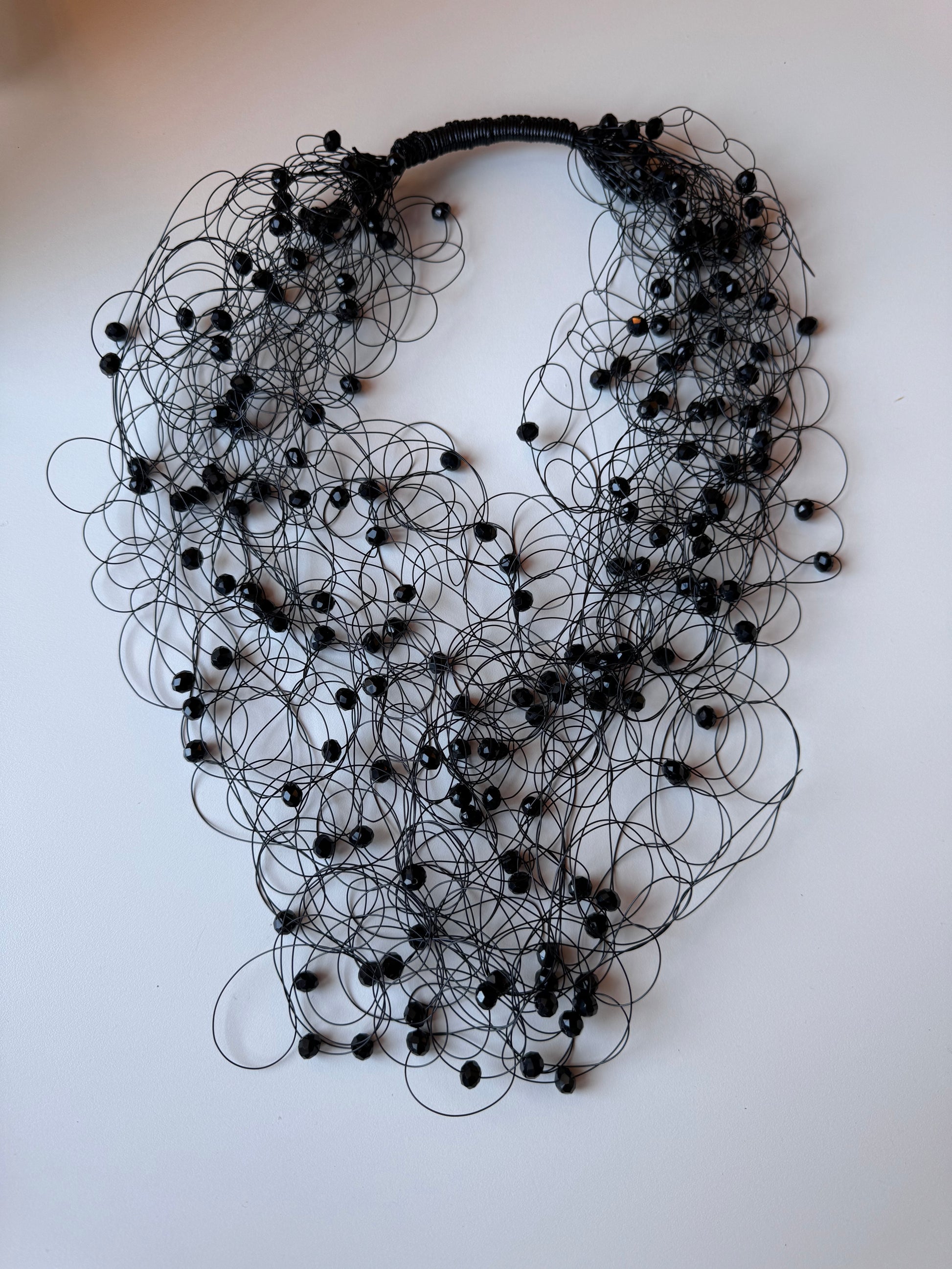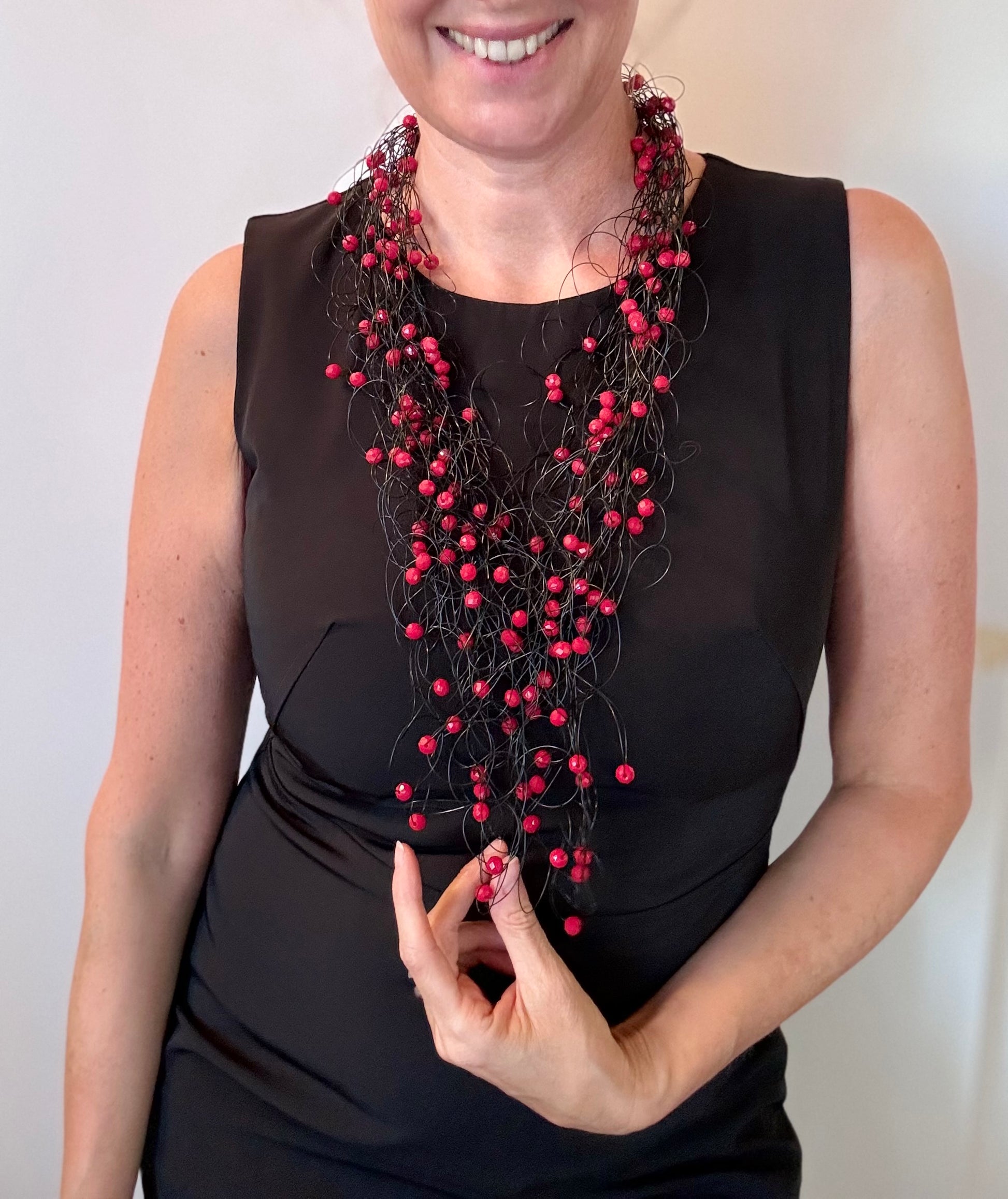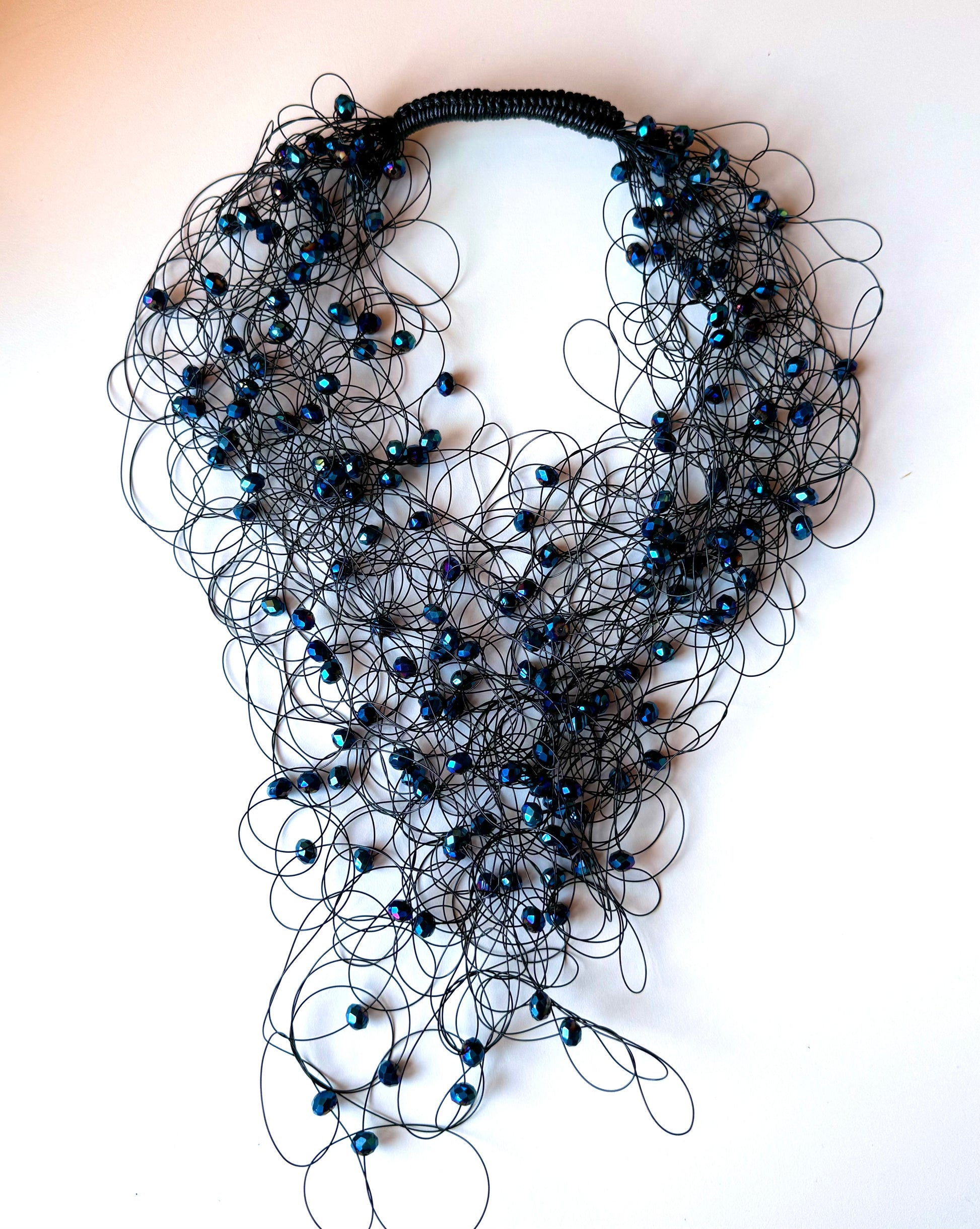 Immaginatevi una collana lunga e leggerissima, composta da fili di nylon e cristalli come gocce di rugiada catturano la luce e la riflettono in una danza incantevole.