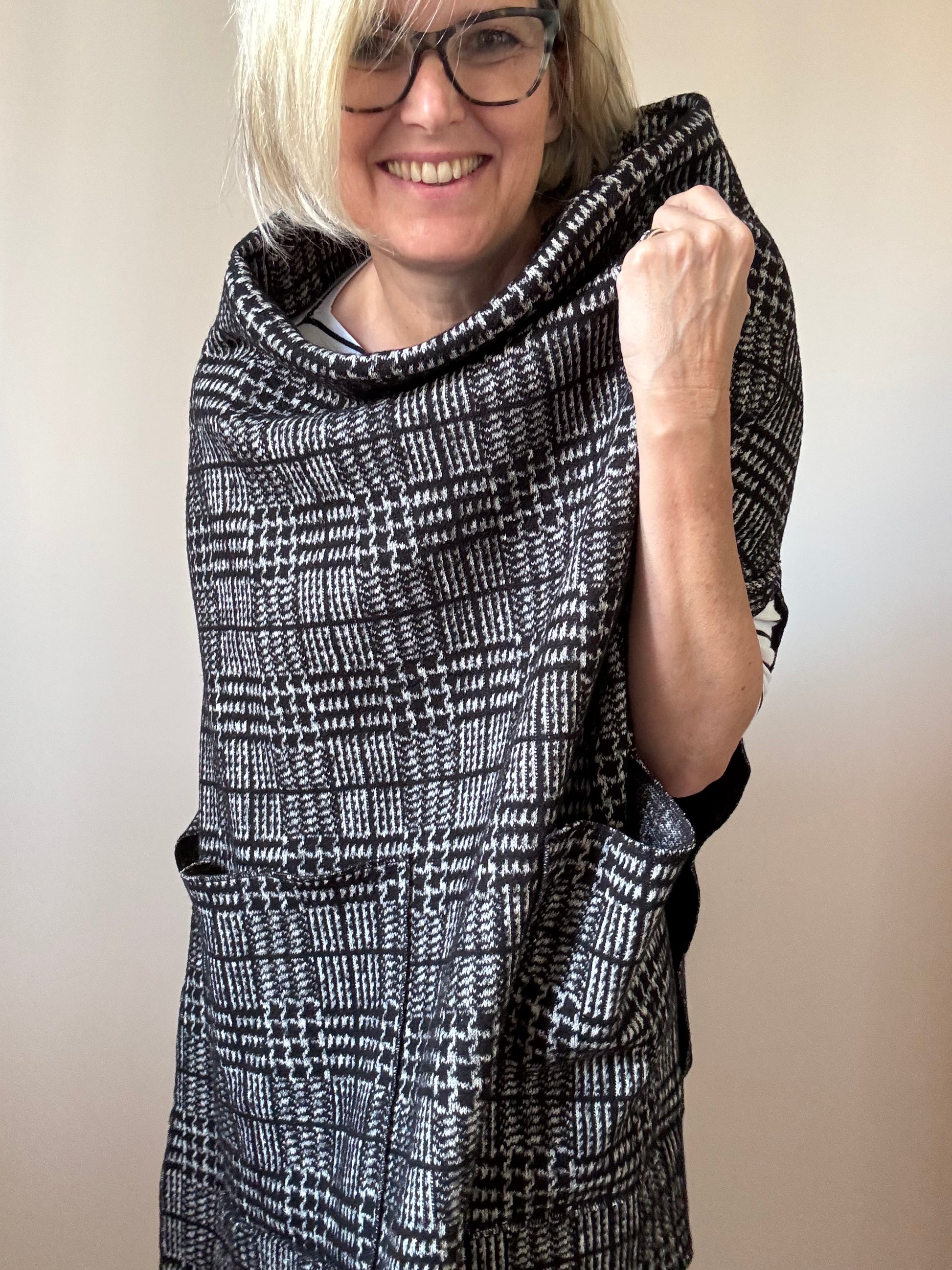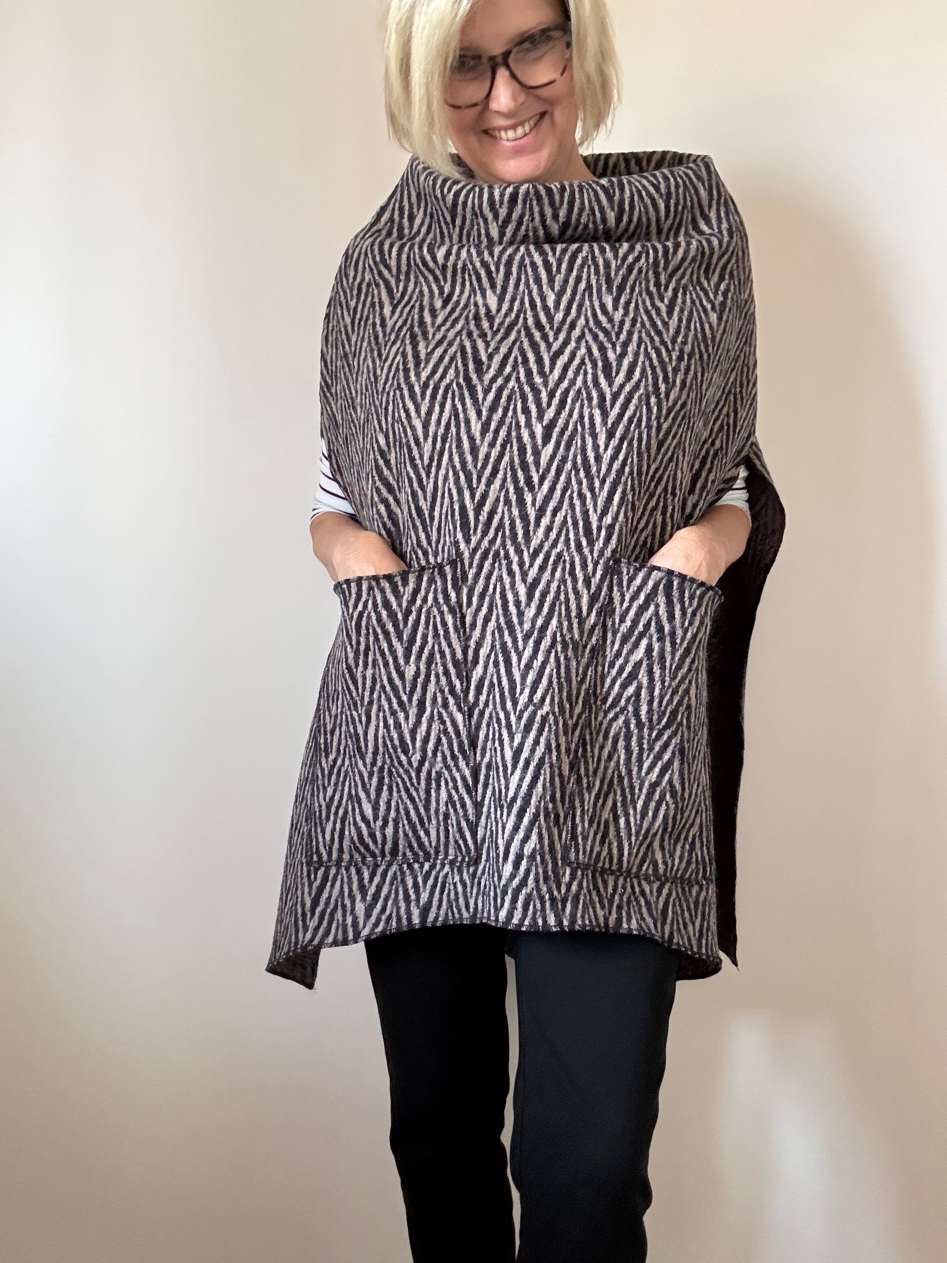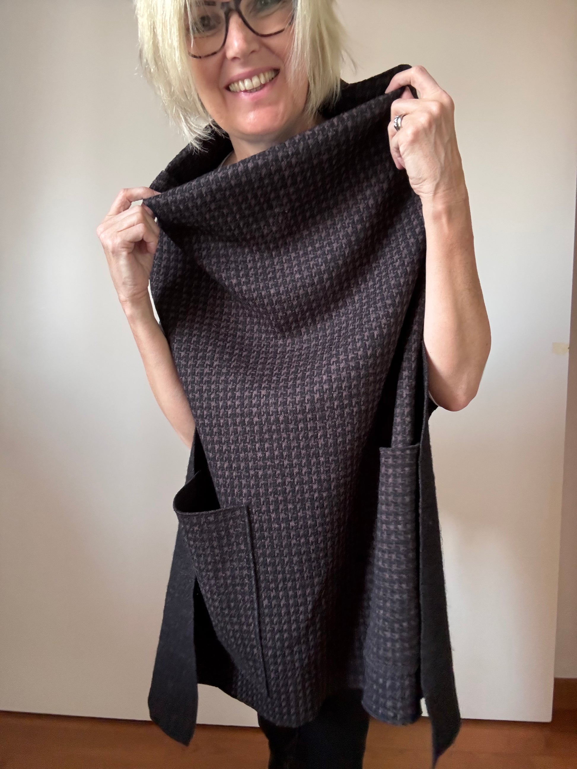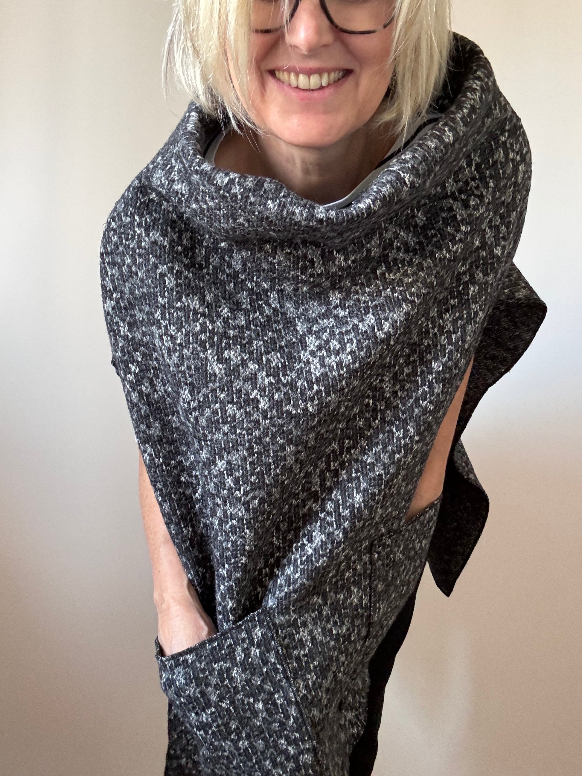 La cappa è un capo versatile e raffinato, pensato per avvolgere senza costringere. Il modello si distingue per i grandi spacchi laterali, che lasciano le braccia libere nei movimenti, e per il caratteristico scollo a cratere, un dettaglio che dona personalità ed eleganza anche alle versioni più sportive.