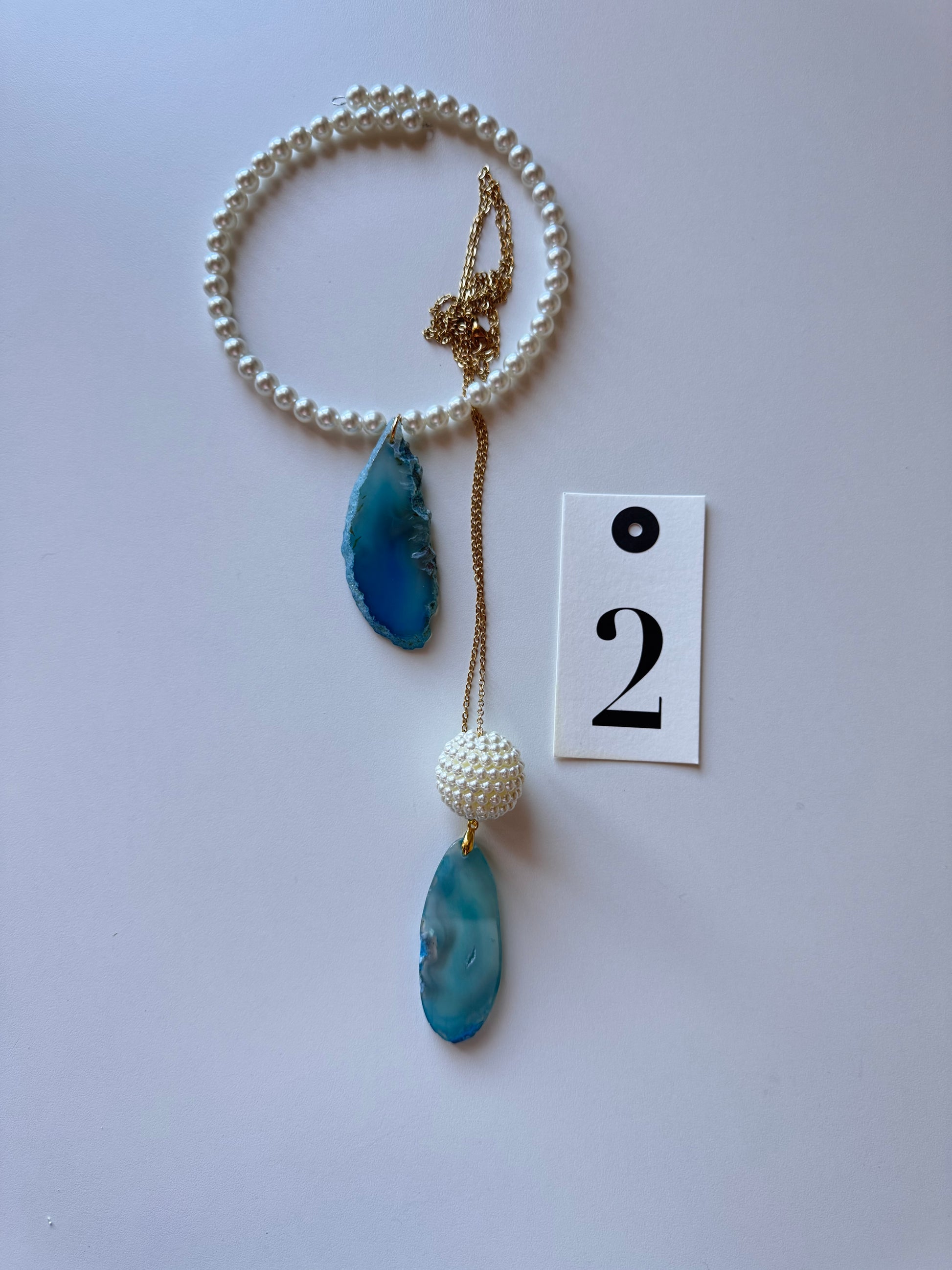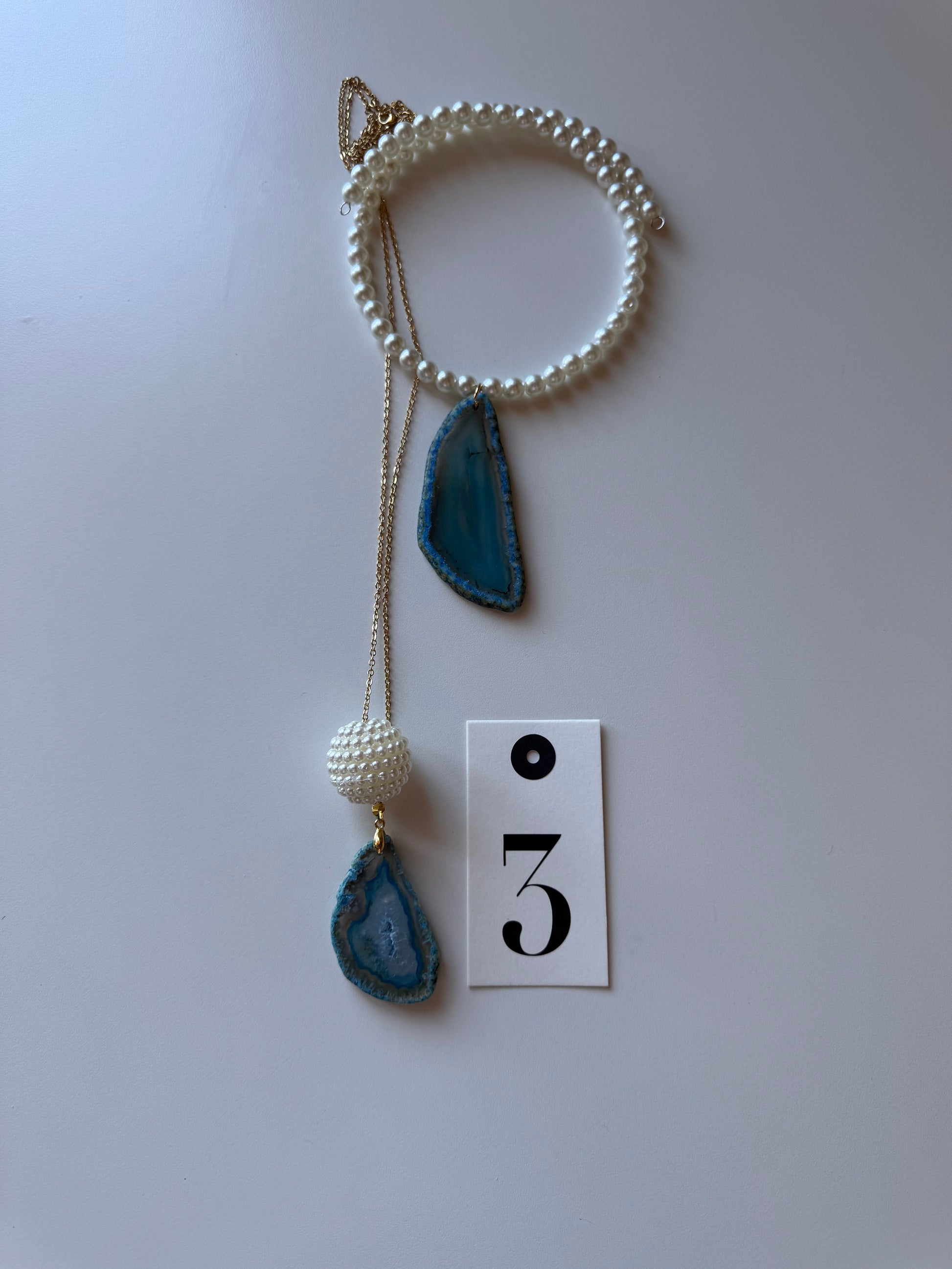 - Materiali: perle in resina, catena acciaio dorato maxi perla, agata colorata